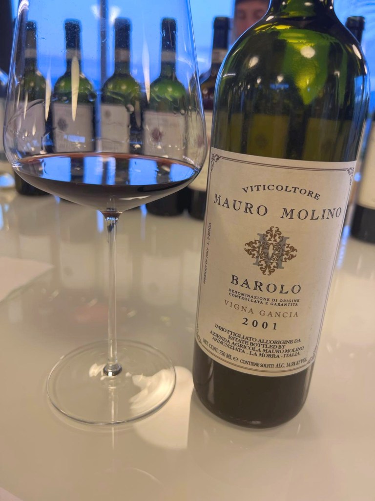Barolo Vigna Gancia 2001: Kompleks røde og mørke bær, florale toner, teblader, skogbunn, sopp, kjølige urter, krydder og fat. Den er lett kompleks og utviklet på smak, god syre, lang og god. ettersmak. En meget god vin som fortsatt tåler mange år i kjelleren, klassisk og god utviklet Barolo av god kvalitet.