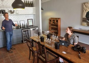 Etter å ha spist en nydelig lunsj på restauranten som tilhører vinhuset like ved, 96 Winery Road. De har forøvrig også et gjestehus på samme sted, midt i vinmarkene, for de som kunne tenke seg å tilbringe en natt der, det kan for øvrig anbefales. Louw forteller meg at vinhuset i dag har 40 hektar vinmark, hovedsakelig i Helderberg og leier 120ha til blant annet i Western Cape. De dyrker økologisk men er ikke sertifisert, de er et såkalt lav-intervensjons vinhus, hvor fokuset er på at hvis druekvaliteten er bra nok – så trenger man ikke å gjøre så mye mer! De har dog en vin, som faktisk er en ren naturvin, Dirty Little Secret, som har kommet ut i tre årganger foreløpig, den første i 2015.