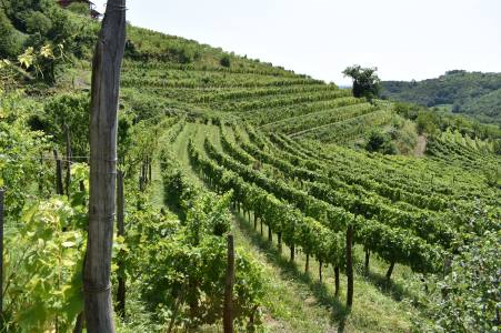 Det er bratt og vinmarkene ligger terrassert rundt Kmetija Stekar, oppdelt i små plotter for hver druevaritet, i tillegg til et par blandede vinmarker. Det sier seg selv at det er mye arbeid å produsere vin slik, både med tanke på bratthengene og håndarbeidet.