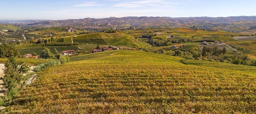 Vingården som vi kjenner i dag ble bygget i et dominerende område med panoramautsikt over åsene i Barolo.