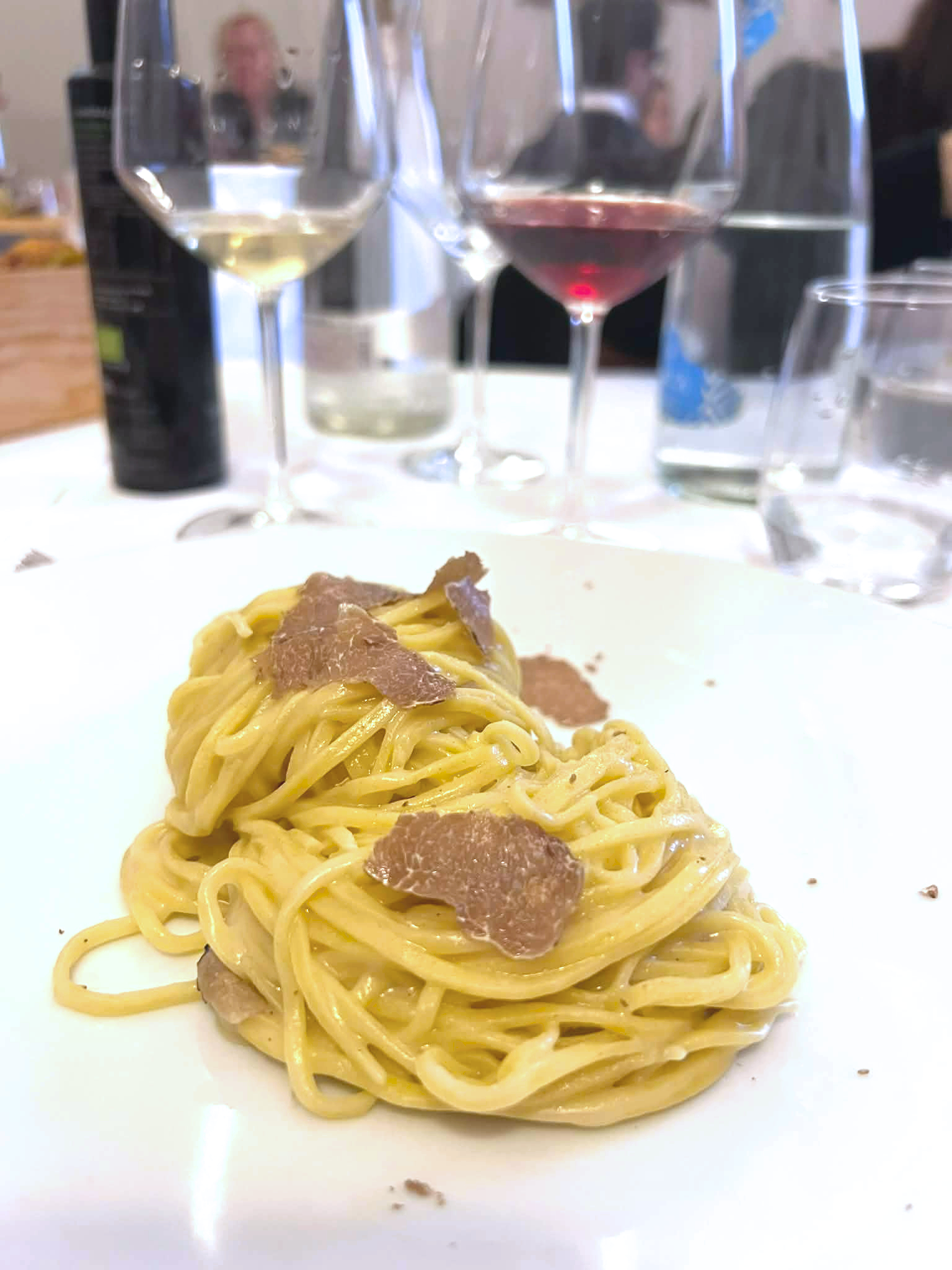 (Vi får også et lite sensorisk seminar om trøfler, strålende ledet av en eksperts på trøffel. En kort, men tydelig forklaring av trøflenes aromatiske sammensetning og utrolig lærerikt og kunne lukte på ulike trøfler)