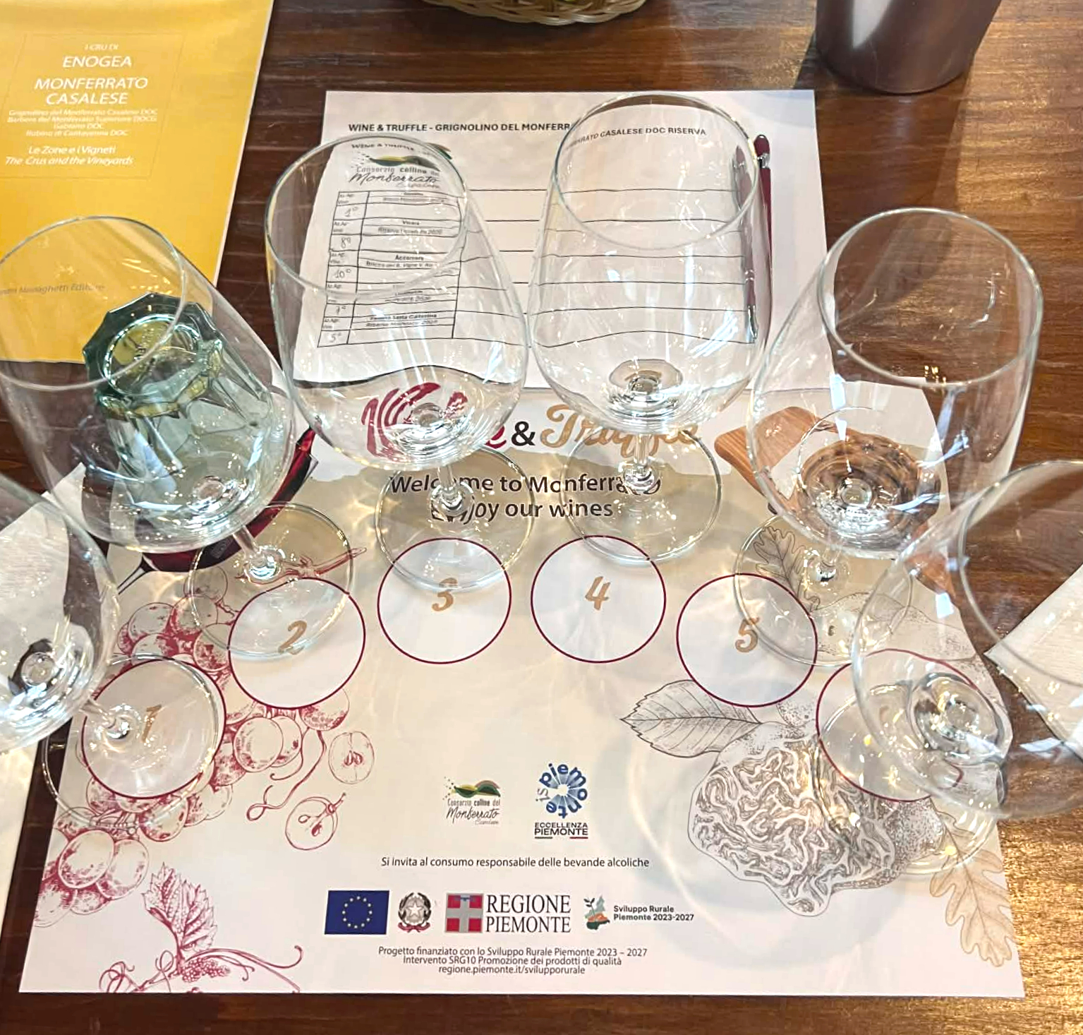 Alt dette kombineres med en sjelden hvit Baratuciat (fra en konsortiumprodusent), Grignolino del Monferrato Casalese og en magnum Monferrato Rosso (Gaudio). Vinkartet inneholder også femti Grignolino del Monferrato Casalese-etiketter.