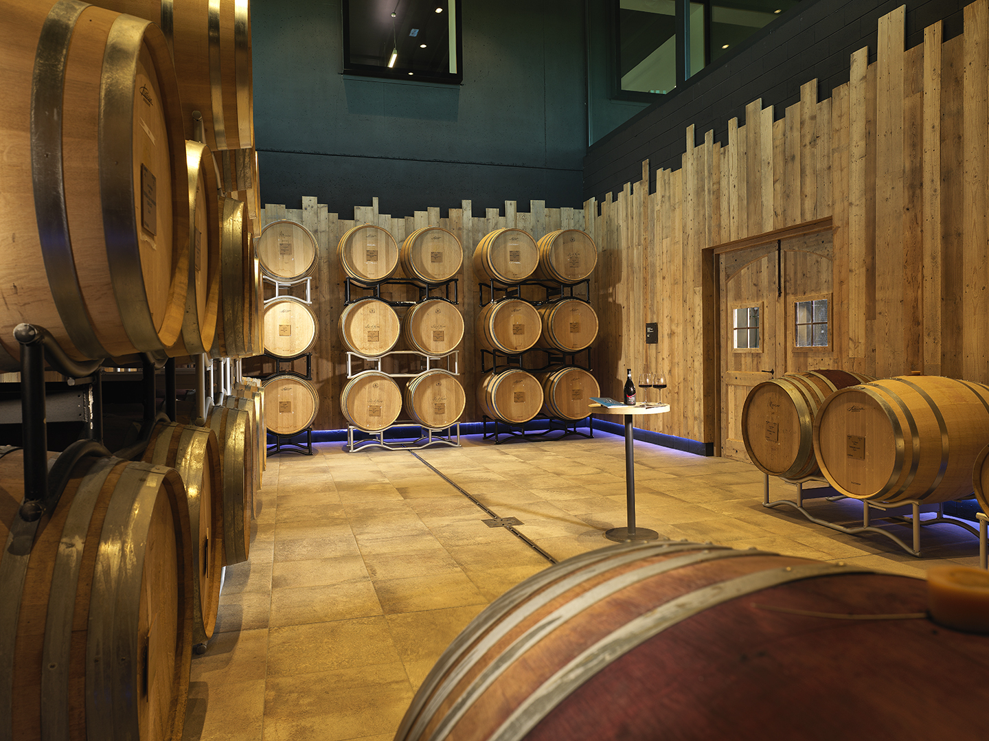 - Vinhuset er bygget som et avant‑garde anlegg, åpent for besøkende og designet for å vise hele prosessen med transparens og estetikk.